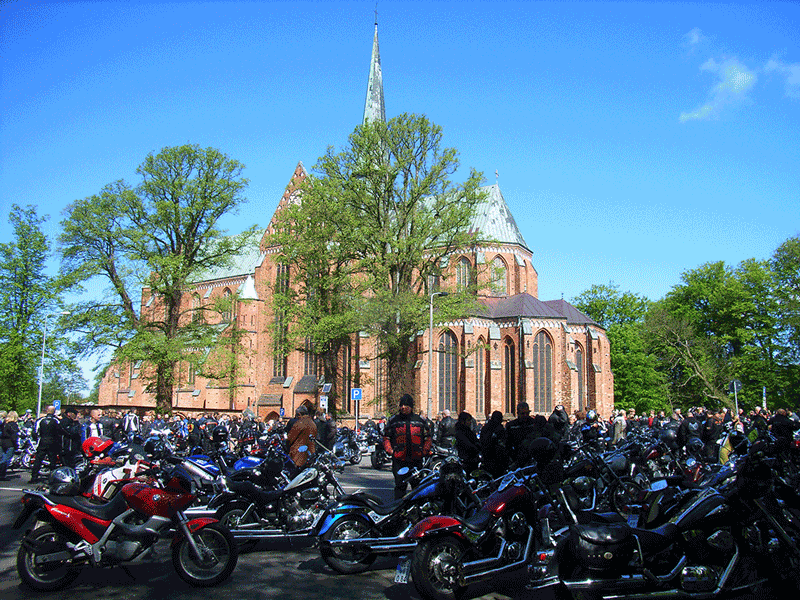 So findet hier am ersten Sonntag im Mai alljährlich ein Bikergottesdienst statt, bei welchem sich die Biker aus vielen deutschen Landen und sogar Scandinaviens treffen. Auf ihren individuellen, funkelnden Maschinen geht es dann in voller Biker- Montur mit dem Segen des Pastors auf Sternfahrt ins Umland. Ein riesiger Schwarm nicht endend wollender tausender Biker dröhnt dann beeindruckend über den Asphalt der grünen Alleen im Doberaner Land.Über vieles Interessantes (Historisches und Aktuelles) mehr zum Doberaner Münster kann man sich natürlich auf den Bad Doberaner Münster - Seiten ausführlicher informieren.